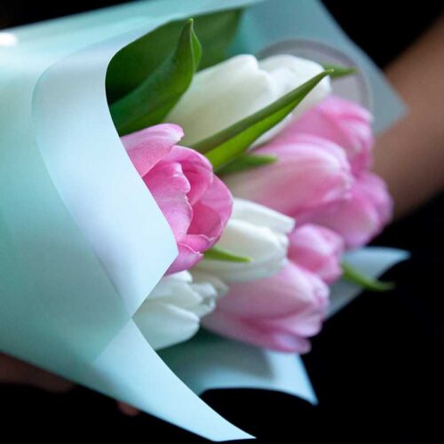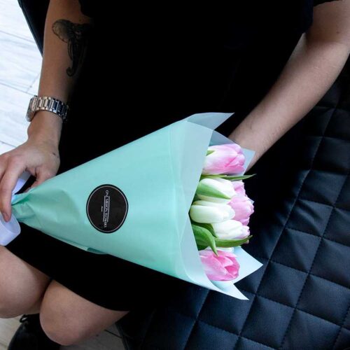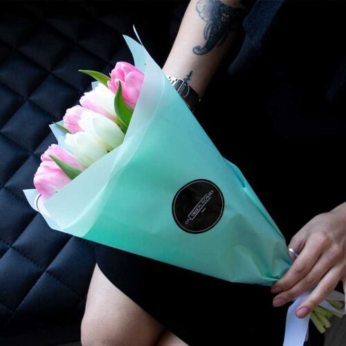Букет из 11 тюльпанов «Вайт Пинк» (От 10 букетов)