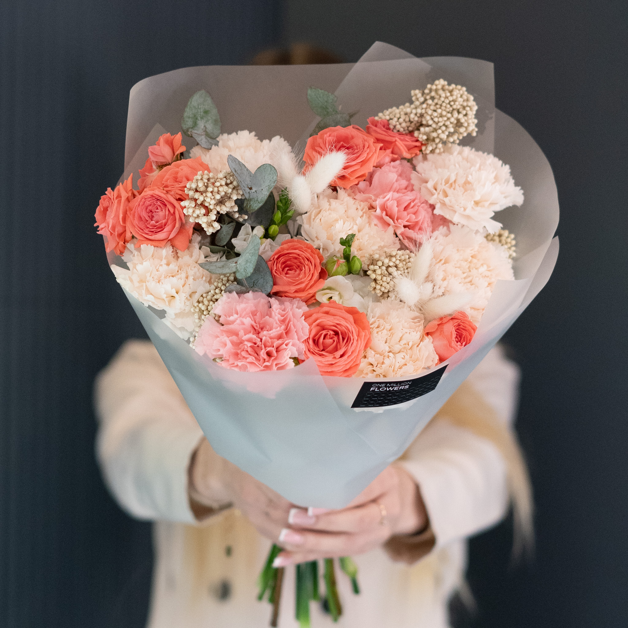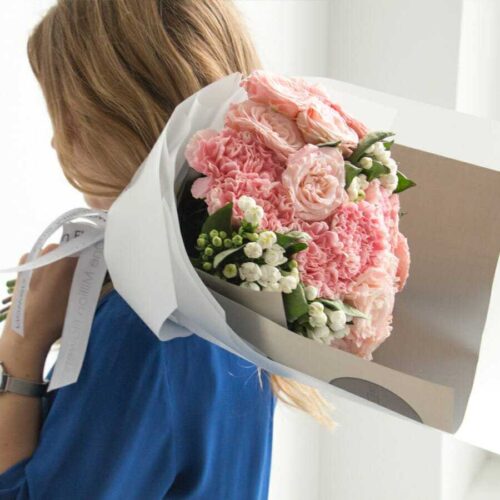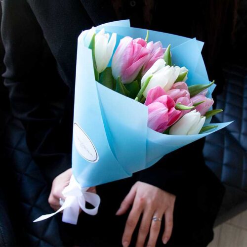Букет из 9 тюльпанов “Вайт Пинк” (От 12 букетов)