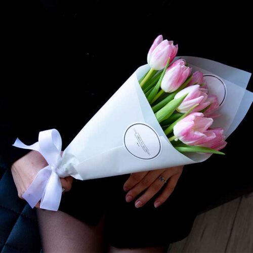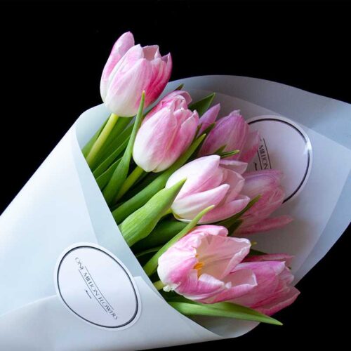 Выбирая в качестве упаковки крафт-бумагу, наши флористы стремятся подчеркнуть очарование и нежный розовый цвет тюльпанов Династия.