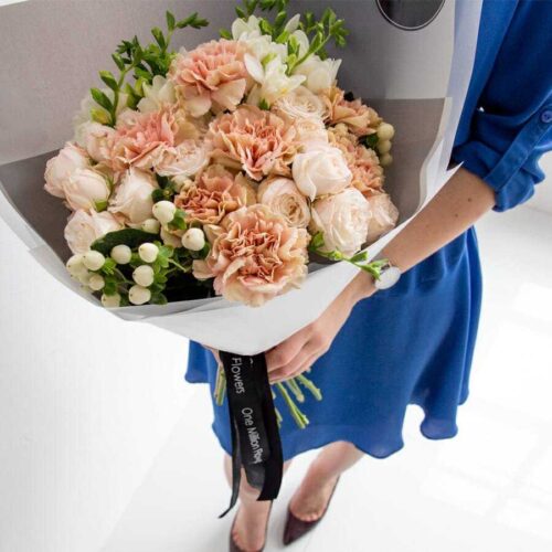 Авторская композиция “Крими Кармен” в роскошной упаковке коллекции с фирменной атласной лентой ONE MILLION FLOWERS.