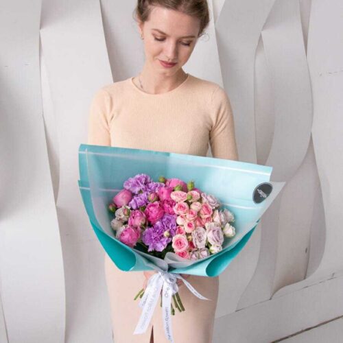 Авторская композиция “Тифани Сонг” в роскошной упаковке коллекции с фирменной атласной лентой ONE MILLION FLOWERS.