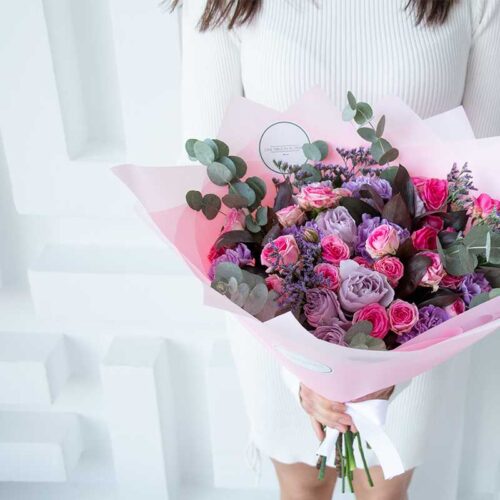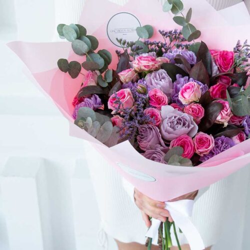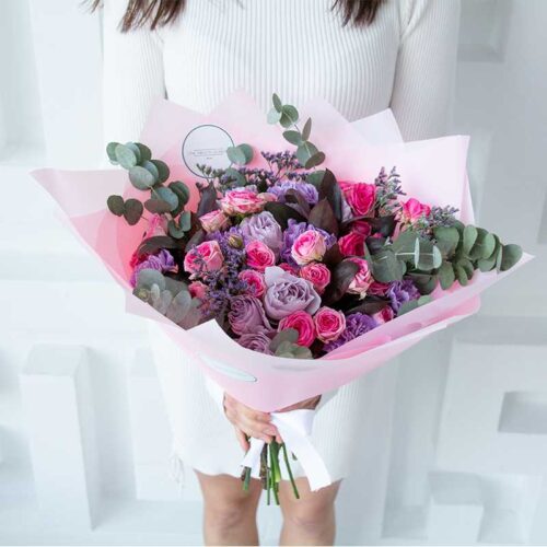 Авторская композиция “Харт Маро” с эквадорским Девид Остин, диантусом, эустомой и эвкалиптом в роскошной упаковке ONE MILLION FLOWERS сделает улыбки ваших любимых ярче.