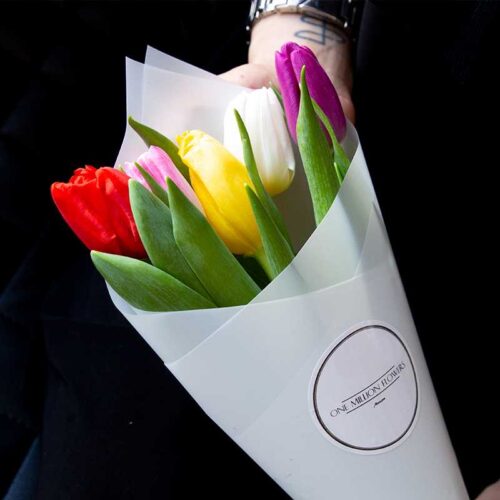 Букет из 5 тюльпанов “Микс” (От 20 букетов)
