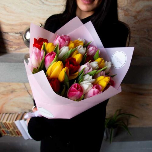 Букет из 25 тюльпанов «Микс» (От 5 букетов)